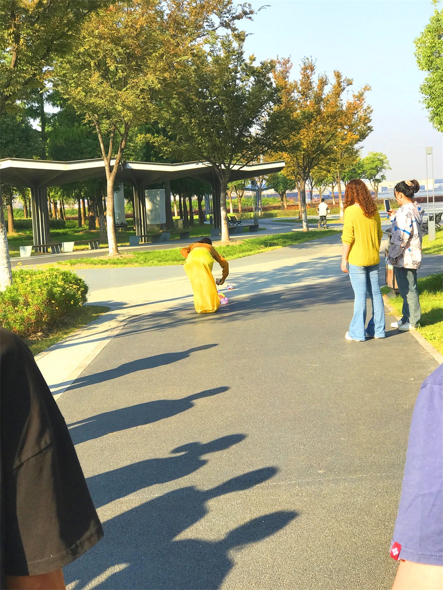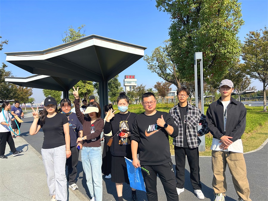 第一项活动:徒步。为了比赛更加明朗,徒步途中设定三个拍摄地点,由南向北依次为:城会玩、浮桥夜市、苏龙苑。队员以此三个地点为背景进行自拍,发群里。等该队所有人全部到达之后,经过组委会确认,方可在指定地点(“江阴港”标志性建筑前面)拍一张集体照,需以江阴港建筑为背景,发至公司家群,到达时间早的获胜。
