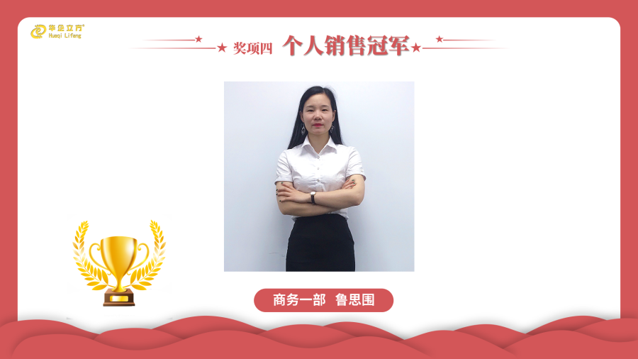 有志者,事竟成,破釜沉舟,百二秦关终属楚;苦心人,天不负,卧薪尝胆,三千越甲可吞吴。这是一个典故,说的是越王勾践和吴王夫差的故事。现在来看就是一个目标达成。你确定什么样的目标,决定你将成为什么样的人,你的目标伟大,你将用伟大的标准来要求自己,做出伟大的事情,成为伟大的人。接下来颁发的就是江阴华企立方公司2024年1月份个人销售冠军奖,获奖者是商务一部鲁思围。