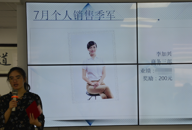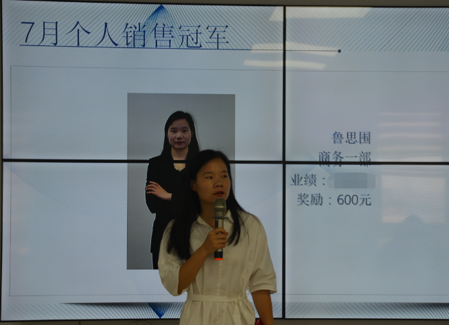高素质的团队离不开领头羊的策谋,因为他们的优秀才能有这样傲人的业绩,他们是公司的栋梁,更是公司的希望,每个部门的业绩能否实现,全靠他们的指导有方,7月优秀经理的获得者是商务一部的汤婷婷。